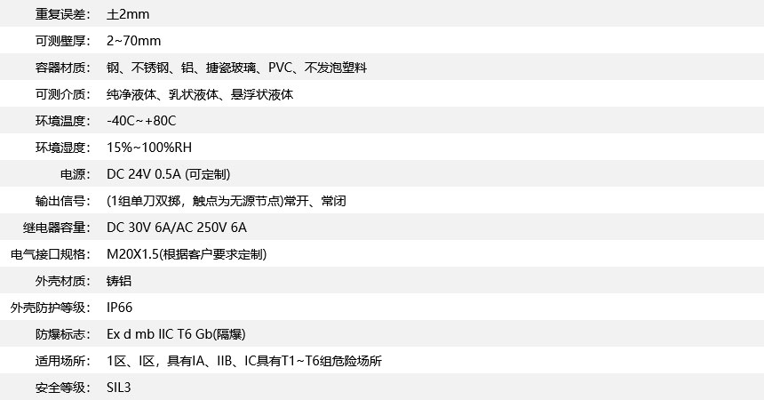 非插入式測量,不受介質(zhì)的壓力、溫度、比重、有無腐蝕性影響適用性廣