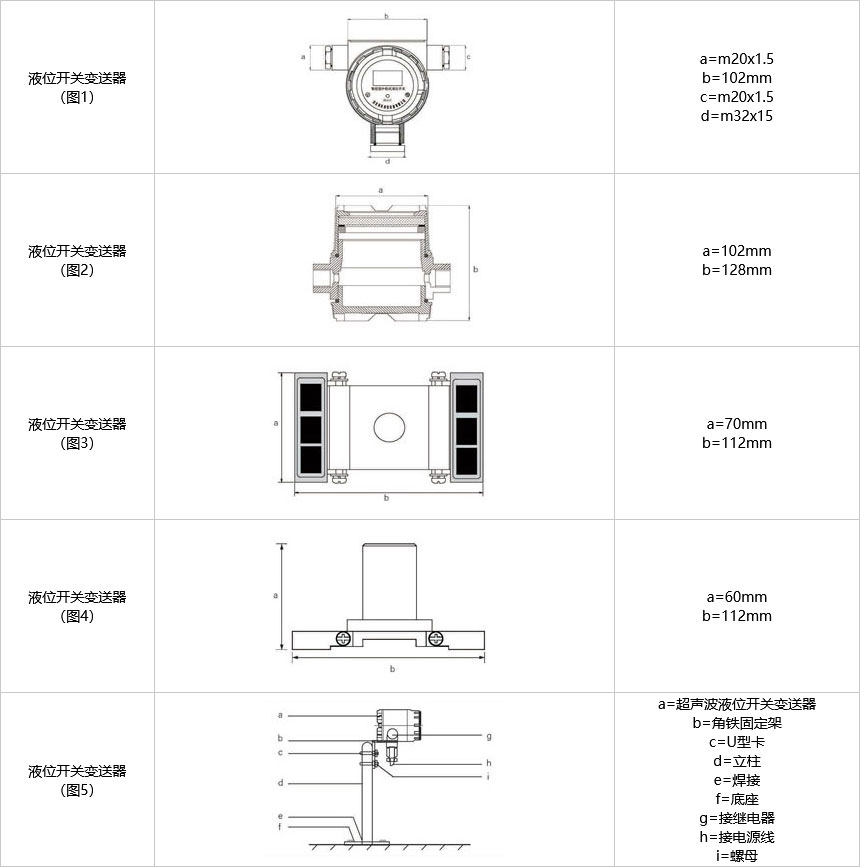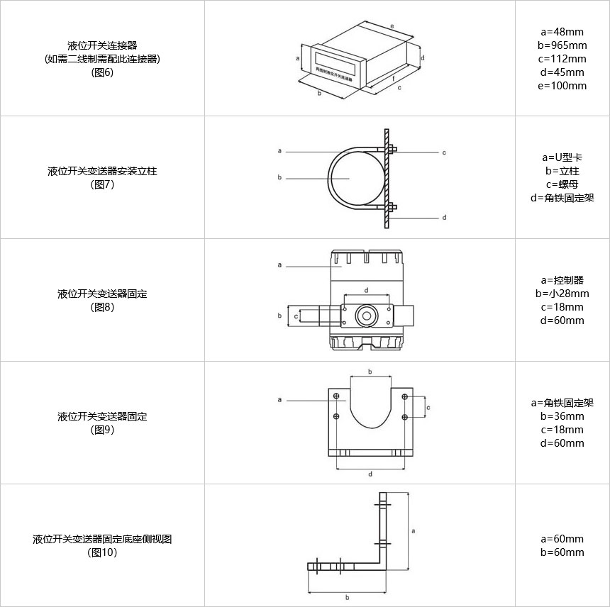 液位開關(guān)變送器固定參照圖5、圖7、圖8、圖9、圖10