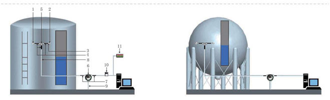 兩探頭傳感器安裝在用戶要求的大罐報警點(diǎn)上。兩個探頭傳感器需要安裝在同一水平線上。安裝探頭傳感器之間避免有焊縫在,每個探頭傳感器位置也應(yīng)盡量遠(yuǎn)離焊縫。安裝位置選用扶梯附近安裝。