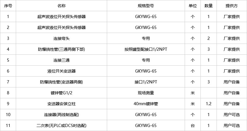 液位開關(guān)變送器撓性管的接口均為G1/2接口,現(xiàn)場配管時注意管接口一致。