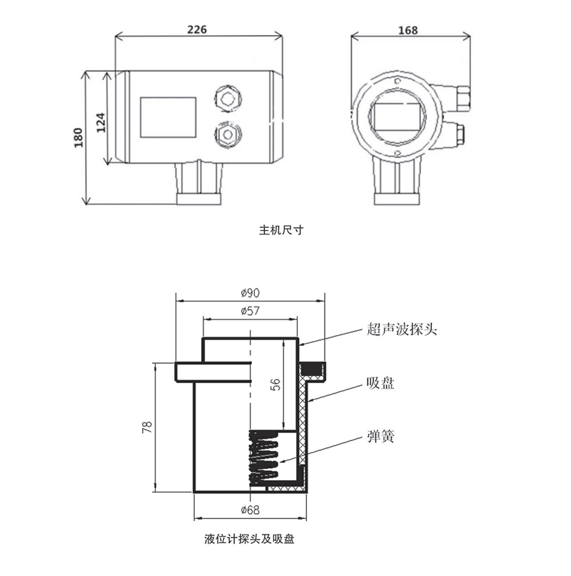 非接觸式測量。超聲波傳感器(探頭)在容器外部利用磁力吸附式,無需對被測容器開孔,就可以實現(xiàn)液位測控;